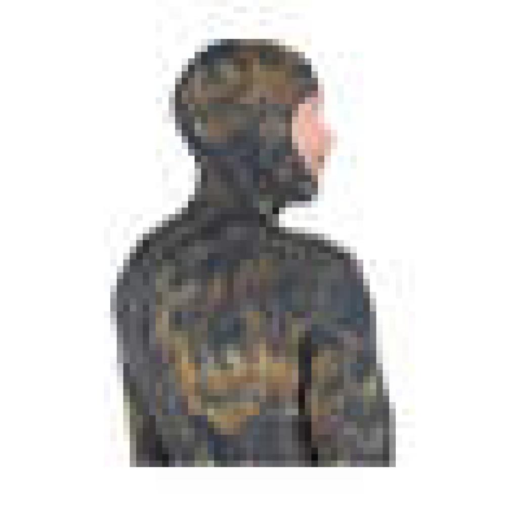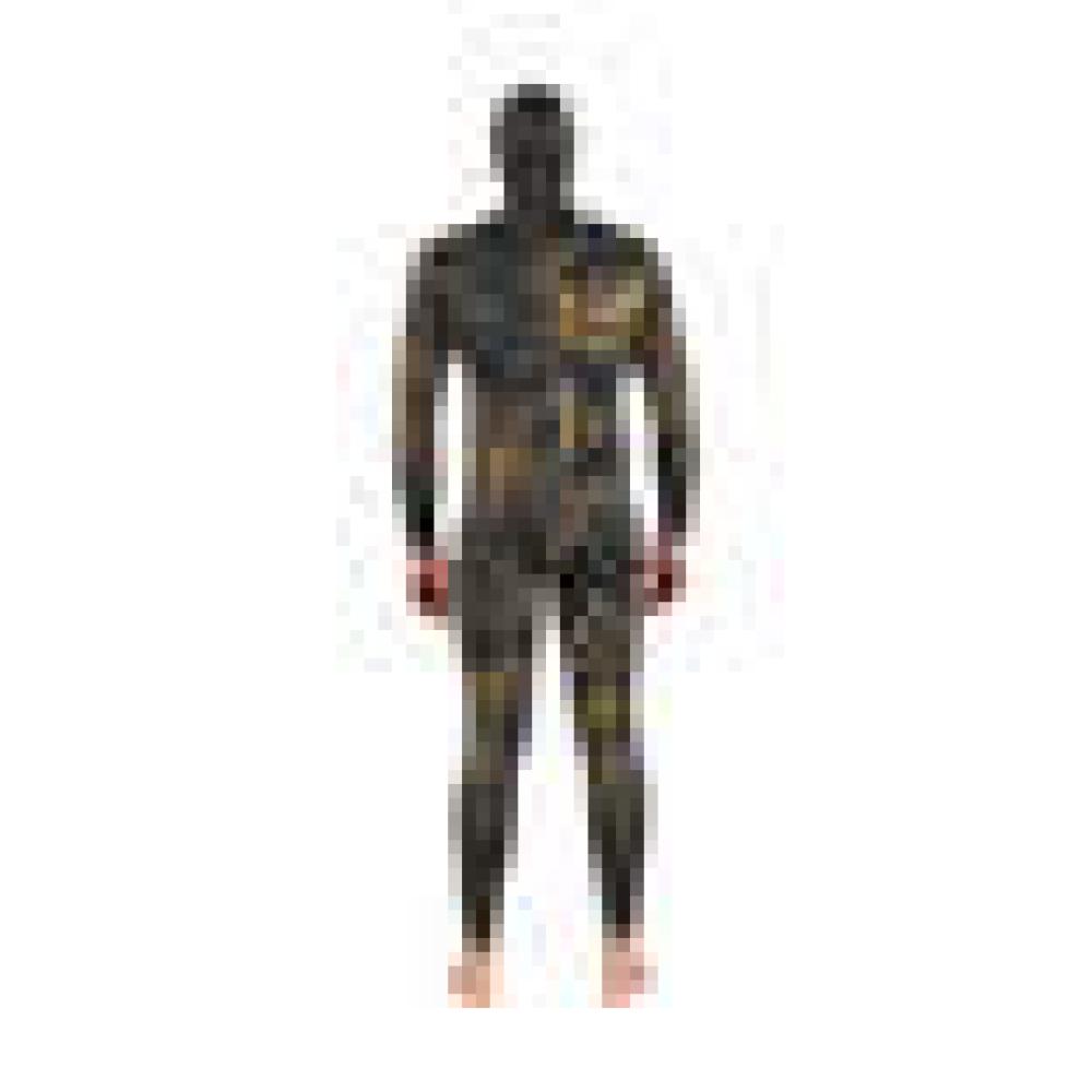 This Wetsuit has an open cell neoprene internal lining, while the exterior has a mimetic pattern with a camouflage print depicting the seabed.